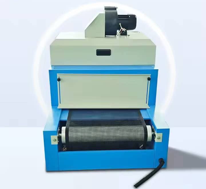 - Изделие проходит через сушку, где УФ-лампа излучает свет в спектре 200–400 нм.